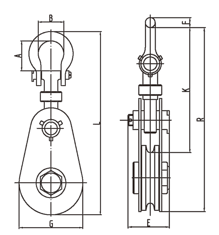 1、吊钩特点:优质合金钢模锻而成,4倍安全系数。 2、滑轮:铸钢滑轮。 3、滑轮套芯:纯青铜套轮芯。 4、滑车轮数:单轮。 5、滑车与吊物的连接方式:链环式。